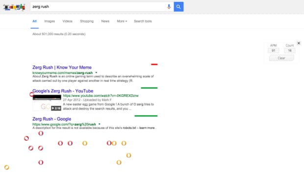 Ketik kata kunci Zerg Rush di kotak pencari Google.
