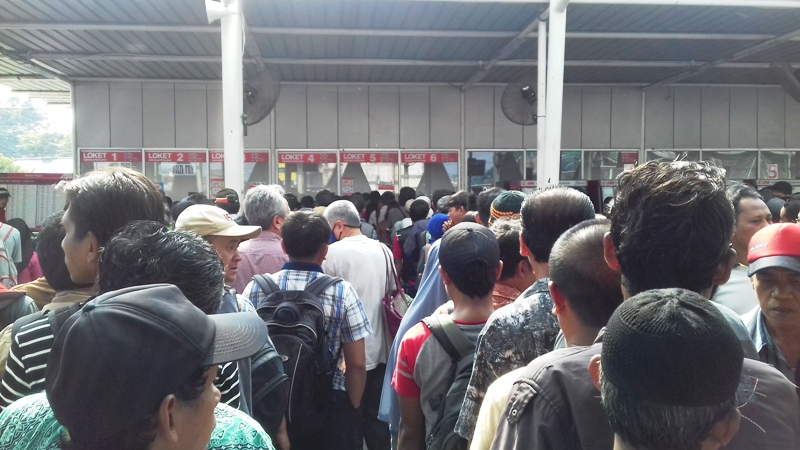 "Saya mau ke Stasiun Jakarta Kota, tapi antrenya sudah setengah jam lebih mas," ucapnya, Senin (14/3/2016)