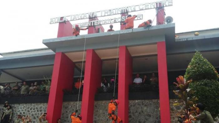 Simulasi penyelamatan ini berlangsung sekitar setengah jam yang disaksikan langsung oleh Meteri Sosial Republik Indonesia, Khofifah Indar