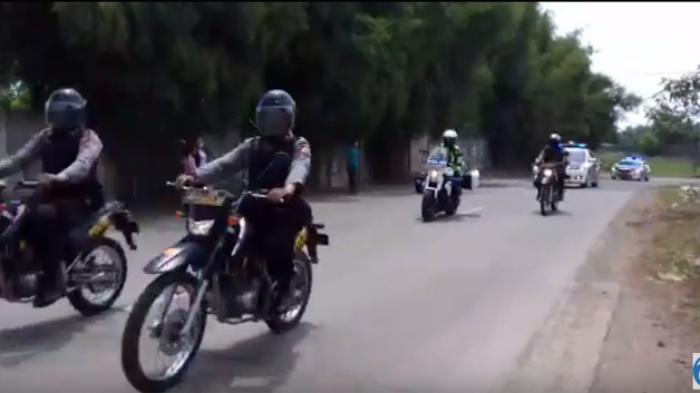 Polisi Tutup Jalan Saat Rombongan Pengawalan Abu Bakar Baasyir Tiba