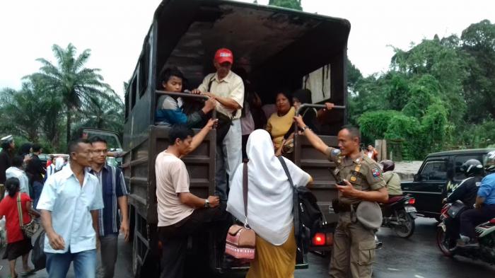 Mobil truk ini mengangkut para penumpang yang terlantar di dekat Simpang Tugu Kujang.