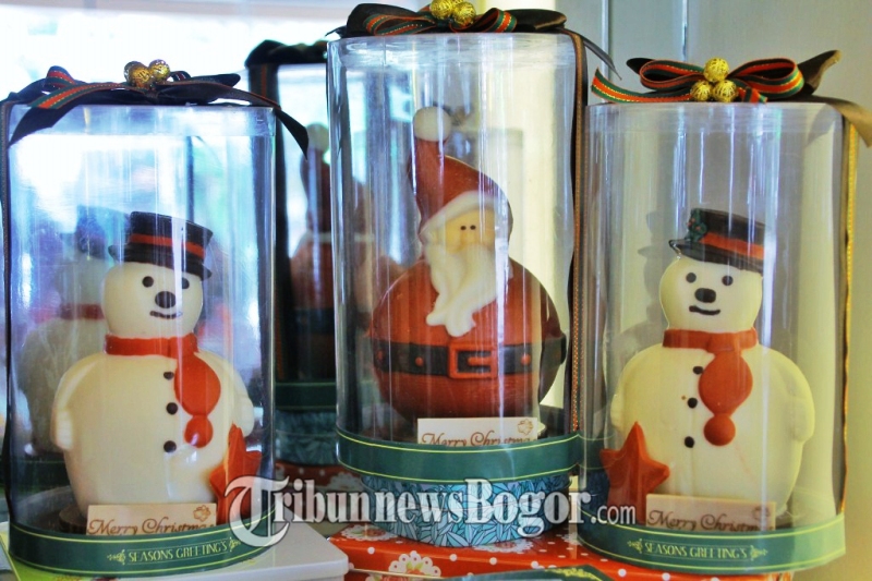 TRIBUNNEWSBOGOR.COM, BOGOR TENGAH - Bentuk cokelat yang didesain spesial Hari Raya Natal dan Tahun Baru ini bikin pembeli tidak tega menggigitnya.