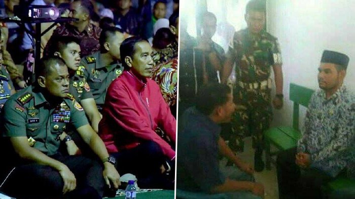 Terlihat pula seorang pria beridiri di sampingnya sambil mengenakan pakaian TNI.