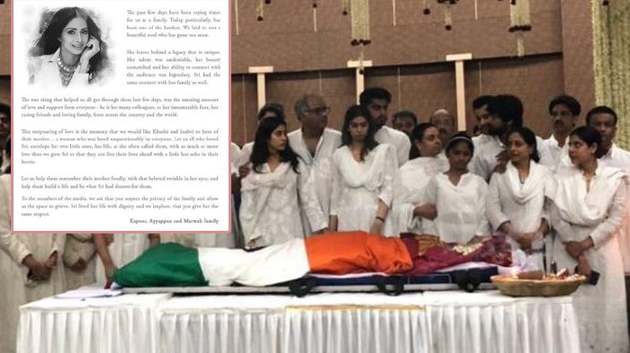 Kemudian, pihak keluarga menyatakan rasa kagumnya kepada Sridevi.