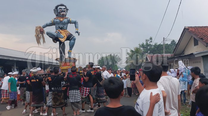 Patung ogoh-ogoh tersebut diarak dari Pura Bhuminatha Sakti untuk berkeliling di Komplek Brimob Desa Cibuluh.