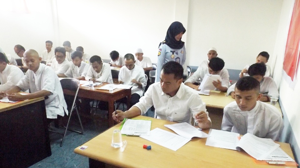 Pelaksanaan USBN itu sendiri dilaksanakan di ruang PKBM (Program Kegiatan Belajar Mengajar) Lapas Kelas IIA Cibinong.