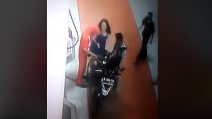 Sekitar pukul 17.28 WIB, sepeda motor Honda Revo yang dikendarai seorang laki-laki muda berbaju kuning berboncengan dengan seorang Ibu-ibu memakai baju biru, menyalip masuk ke pom pengisian bahan bakar yang tengah dijaga Iqbal.