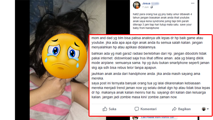 Anaknya yan gbaru berusia 4 tahun harus mengalami nasib tragis akibat keseringan memainkan ponselnya.