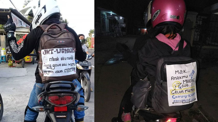 Ada sejumlah foto warganet soal tulisan di belakang pemudik.