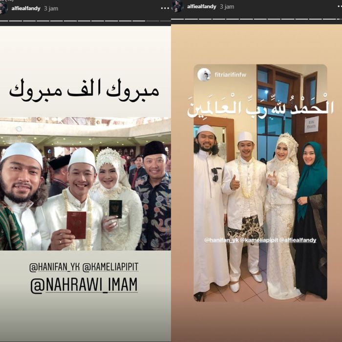 Alfie juga mengunggah momen pernikahan Hanifan dan Pipiet ini di instagram pribadinya.