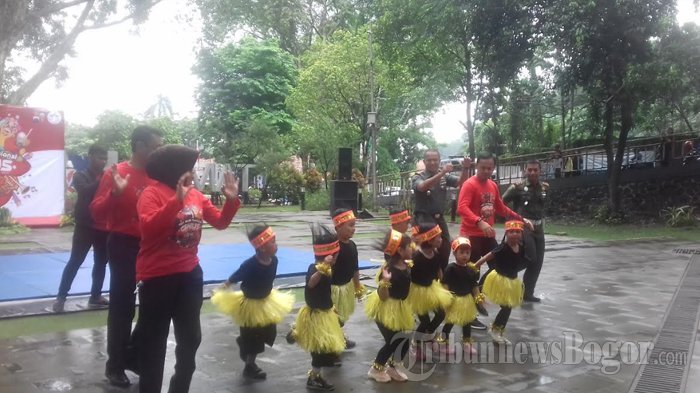 Bahkan Wali Kota Bogor Bima Arya bersama Dandim 0606/Kota Bogor, Dandenpom serta aparatur kepolisian ikut menari bersama anak-anak.