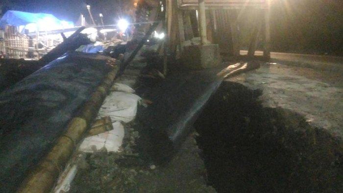 Terpantau, keretakan jalan hanya sekira satu meter dari tepi badan jalan.