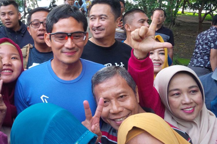 Mereka berebut untuk bisa bersalaman dengan Sandi. Mereka juga mengajak Sandi untuk berswafoto (selfie).