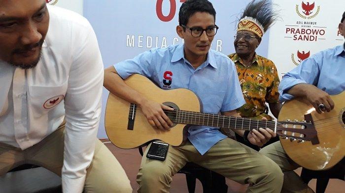 Adapun Sandiaga memainkan gitar sembari bernyanyi.