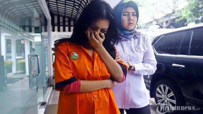 Tersangka selebgram Aca alias Reva Alexa dihadirkan dalam rilis pengungkapan kasus penyalahgunaan narkotika yang disampaikan oleh Kabid Humas Polda Metro Jaya Kombes Pol Argo Yuwono bersama Kasubdit II Ditresnarkoba Polda Metro Jaya AKBP Doni Alexander, di Polda Metro Jaya, Jakarta, Kamis (7/2/2019). Tim Unit 3 Subdit II Psikotropika Dit Resnarkoba Polda Metro Jaya berhasil menangkap dua orang tersangka diantaranya Is alias Iwan dan seorang selebgram sekaligus model video klip Aca alias Reva Alexa terkait kasus tersebut dengan barang bukti yang diamankan berupa sabu seberat 0,28 gram dan lima buah alat hisap.