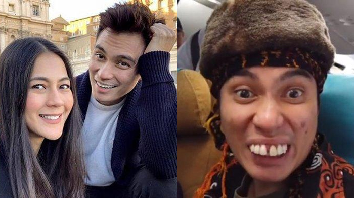 Sedari berangkat dari Jakarta, Baim Wong sudah menyamar menggunakan gigi palsu.