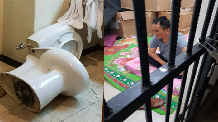 Petugas pun terpaksa membongkar kloset dibantu pihak hotel untuk mengambil bong yang dibuang ke dalam kloset.