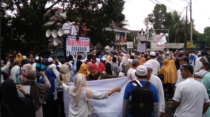 Masa tersebut melakukan long march dari Masjid Raya Bogor ke Kantor KPU Kota Bogor.