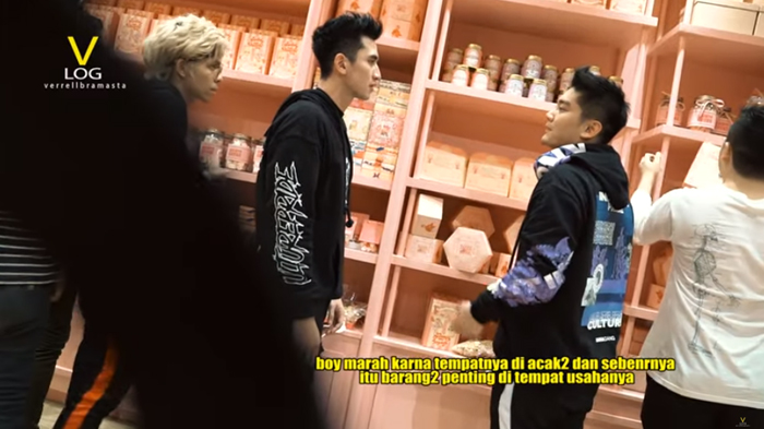 Boy William tampak marah kepada Verrell karena tempat usahanya diacak-acak oleh Verrell Bramasta yang pura-pura pingsan.