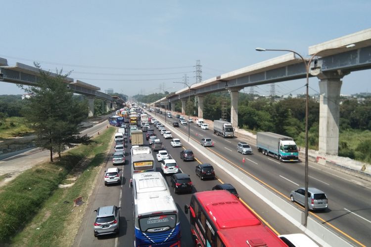 lonjakan volume lalu lintas di ruas Jakarta-Cikampek yang menurut Jasa Marga mencapai hingga 159,8 persen.