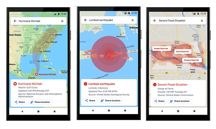 Ada tiga kategori bencana yang akan ditampilkan Google Maps, yaitu badai, gempa bumi, dan banjir.