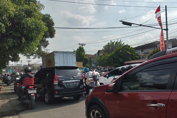 Kepadatan lalu lintas terjadi tepatnya di kawasan Simpang Jalan Kedung Halang, Kecamatan Bogor Utara, Kota Bogor.