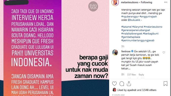 Level UI mah udah perusahan luar negeri. Kalau lokal mah oke aja, asal harga cocok," demikian post Insta Story yang viral itu.