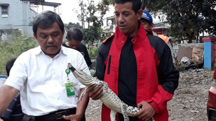 TRIBUNNEWSBOGOR.COM, BOGOR BARAT - Warga Kampung Loji, Gang Pala, Kelurahan Gunung Batu, Kecamatan Bogor Barat, Kota Bogor menyerahkan seekor buaya kepada Badan Konservasi Dan Sumberdaya Alam, Kamis (14/8/2019).