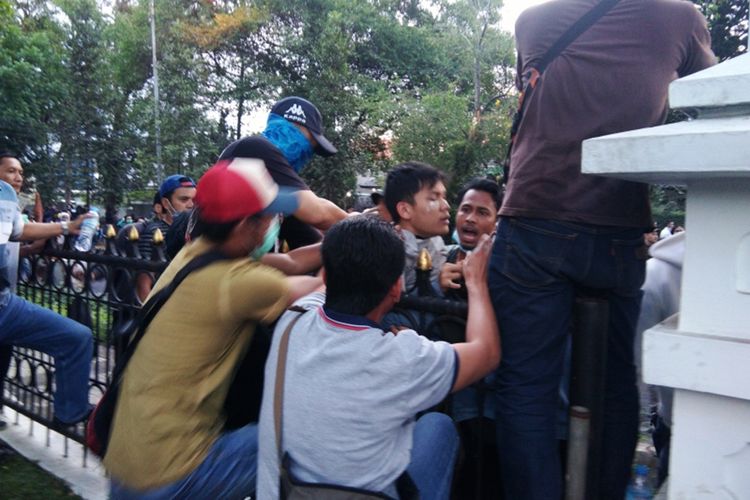 Kericuhan terjadi setelah para demonstran merobohkan pagar gedung DPRD Jabar.