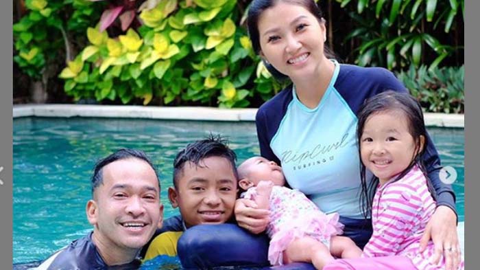 Sementara Thalia Onsu, Bertrand Peto, dan Sarwendah mengenakan kaos warna pink yang lebih muda dibanding Ruben Onsu.