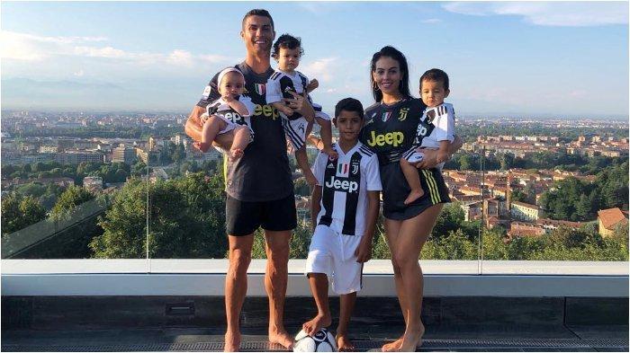 Ronaldo tampak mengunggah sebuah foto yang menunjukkan pacarnya, Georgina Rodriguez, yang sedang bersama keempat anaknya, yakni, Alana, Cristiano Ronaldo Junior, Mateo Ronaldo serta kembarannya, Eva Maria Dos Santos.
