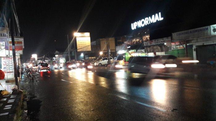 Hati-Hati Jalan Licin, Lalu Lintas di Jalan Raya Sukahati Ramai Lancar Malam Ini