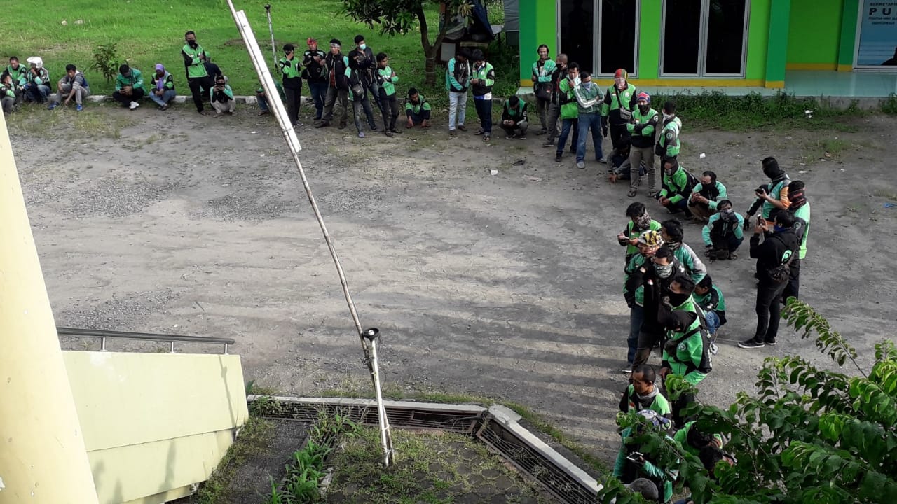 Karena panjangnya antrean, para ojol ini bahkan harus mengantre berjam-jam.