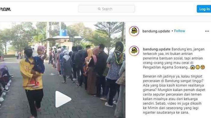 TRIBUNNEWSBOGOR.COM - Video antrean perceraian yang mengular di Pengadilan Agama Soreang, Kabupaten Bandung, Jawa Barat, beredar di akun instagram @ bandung.update.
