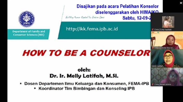 Melalui seminar Let’s Learn: How to Be a Counselor dengan tema “Spread Your Love, Be a Good Listener” yang diadakan Himpunan Mahasiswa Ilmu Keluarga dan Konsumen (HIMAIKO) IPB University pada hari Sabtu, 12 September 2020 mengundang pembicara yang berpengalaman di bidang konseling yaitu Ibu Dr. Ir Melly Latifah M.Si.