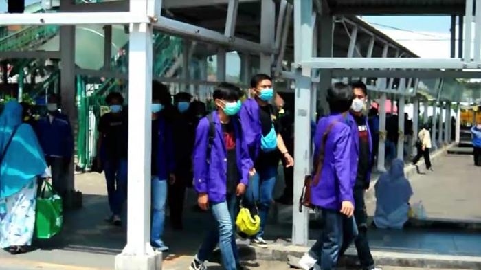 Para mahasiswa ini berangkat dengan menggunakan angkutan kota dari kampus menuju Stasiun Bogor.