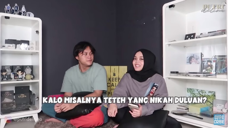 "terus kalau teteh yang nikah dulu aa rela gak ?" tanya Putri Delina.