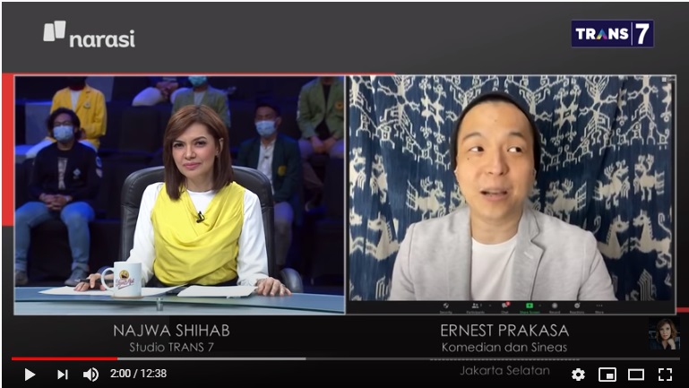 "kalau takut gak, tapi lebih berhati-hati," kata Ernest Prakasa dikutip TribunnewsBogor.com dari akun Youtube Najwa Shihab.