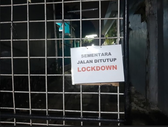 Gerbang di Perumahan Kelurahan Pabuaran Bojonggede bertuliskan lockdown