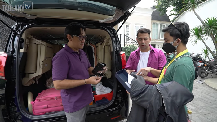 Andre tak menyangka bagian belakang mobil Raffi dijadikan tempat menyimpang baju hingga sepatu.