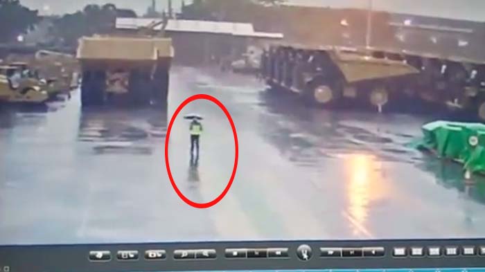 Namun begitu mendekati sebah alat berat, petir kemudian menyambar sang satpam.