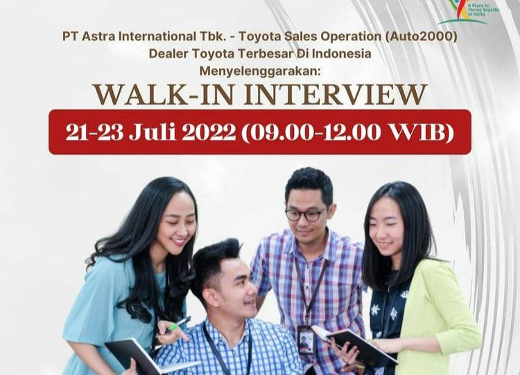 Pelaksanaan lowongan kerja berlangsung pada 21-23 Juli 2022 dari pukul 09.00-12.00 WIB di Auto2000 Bogor Yasmin Jalan KH. R. Abdullah Bin Nuh, Bogor.
