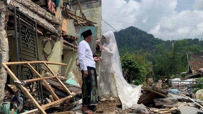 Momen Mengharukan, Sejoli Menikah Dihiasi Reruntuhan Bangunan Gempa Cianjur: Kembali Hidup Normal