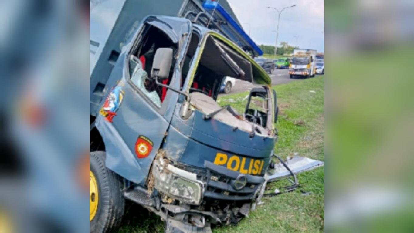 Saat kejadian diketahui bahwa truk Hino Polisi Sabhara ini tengah berhenti di bahu jalan