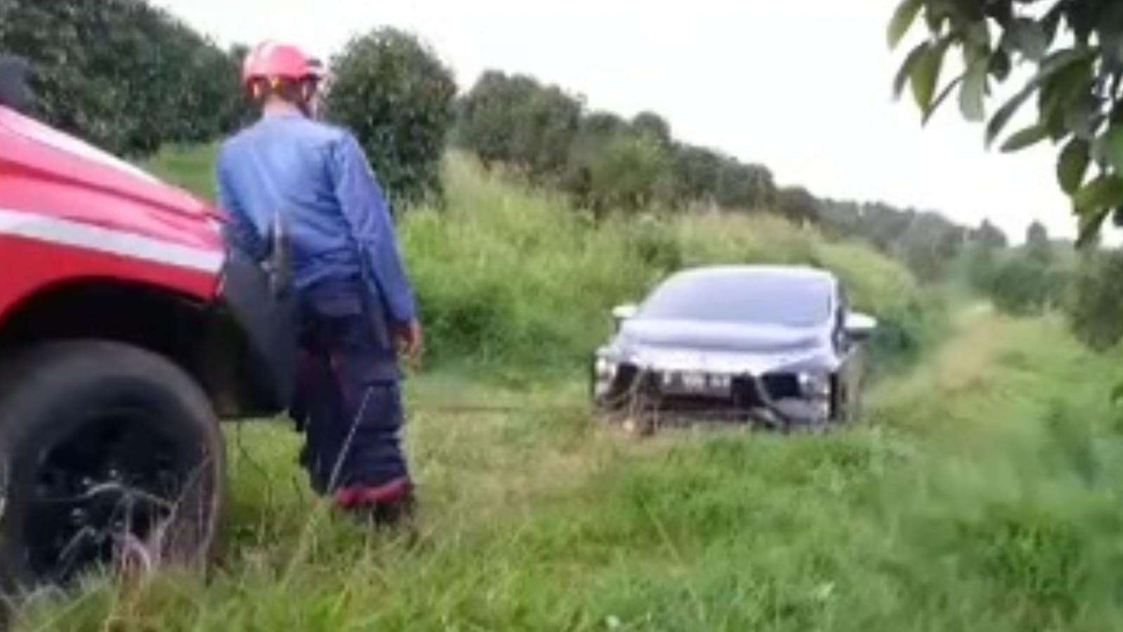 Sehingga, mobil Mitsubishi Xpander dengan nomor polisi B 1688 SIR itupun masuk ke area semak-semak perkebunan teh sekitar.