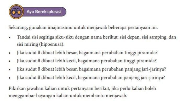 • Jika sudut θ dibuat lebih besar, bagaimana perubahan tinggi piramida?