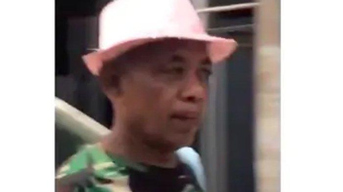 Sembari menenteng tas biru dan mengenakan kaos, Pak Tarno tak sadar dirinya direkam warga.