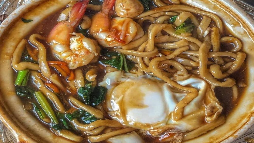Salah satu kuliner Bogor hidden gem Sapo Mie Acek Ameng, sapo mie yang disajikan di dalam claypot dengan aneka topping melimpah.