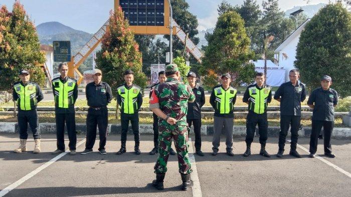 TRIBUNNEWSBOGOR.COM, CISARUA - Sebanyak 10 sekuriti di Rest Area Gunung Mas, Puncak Bogor diajak senam oleh Babinsa Tugu Selatan, Peltu Nurakhman, guna meningkatkan kesiapsiagaan dan keprofesionalan kerja.