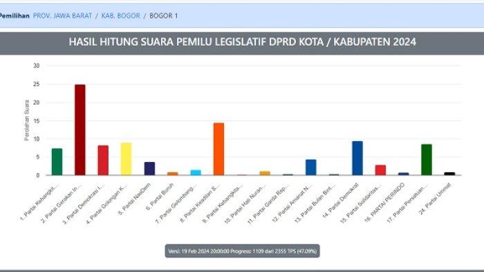 Berdasarkan hasil sementara, Partai Gerindra tampak masih menguasai Kabupaten Bogor untuk perolehan suara partai mencapai 194.540